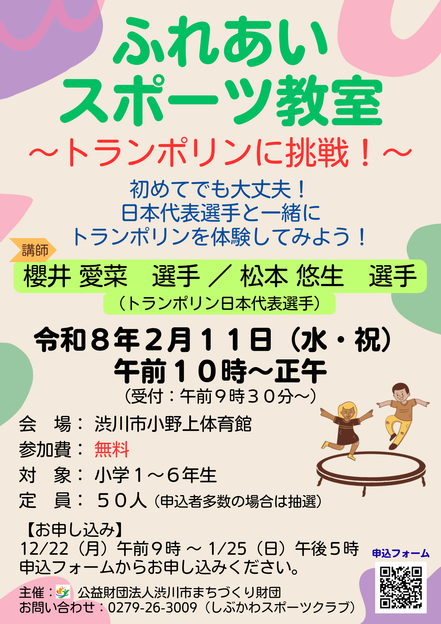ふれあいスポーツ教室 ~トランポリンに挑戦!~ を開催します!