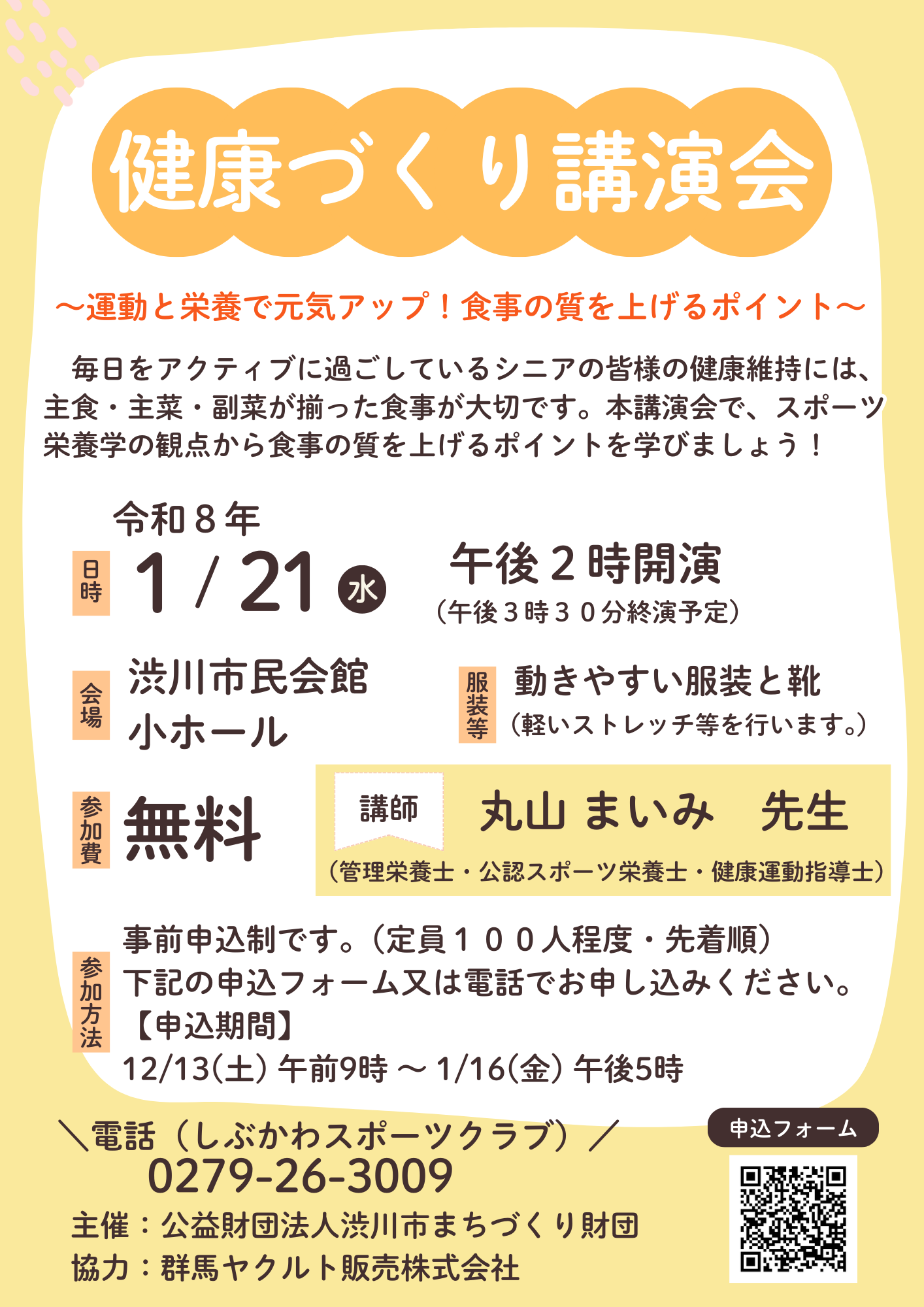健康づくり講演会 ~運動と栄養で元気アップ!食事の質を上げるポイント~ を開催します!